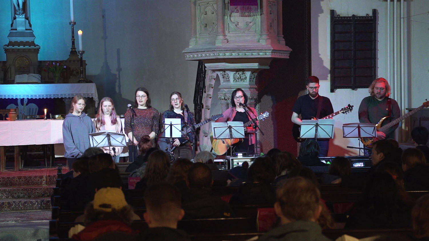 Unser Repertoire ist vielseitig: Von ruhigen a-cappella Taizé-Liedern bis hin zu rockigen Songs ist alles dabei.